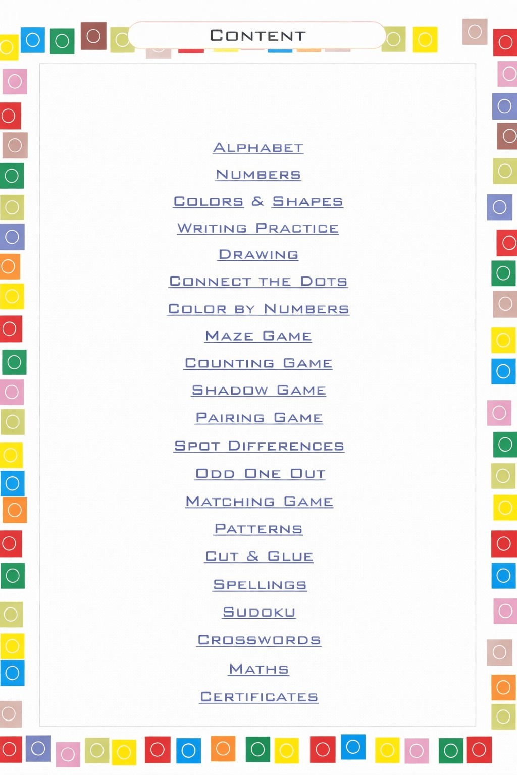 A massive collection covering drawing, colouring, tracing, puzzles, math, reading, logic & more.